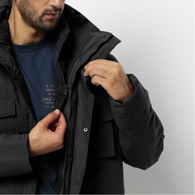 Jack Wolfskin Winter Jacket Eiswald 3in1 Parka (breathable, waterproof, windproof) black Men