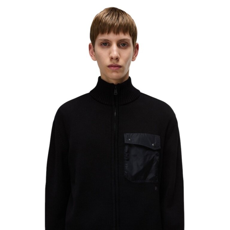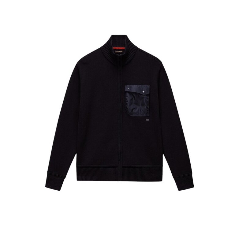 Napapijri Berti Full-Zip Jumper (Cotton, Chest Pocket) Black Men's