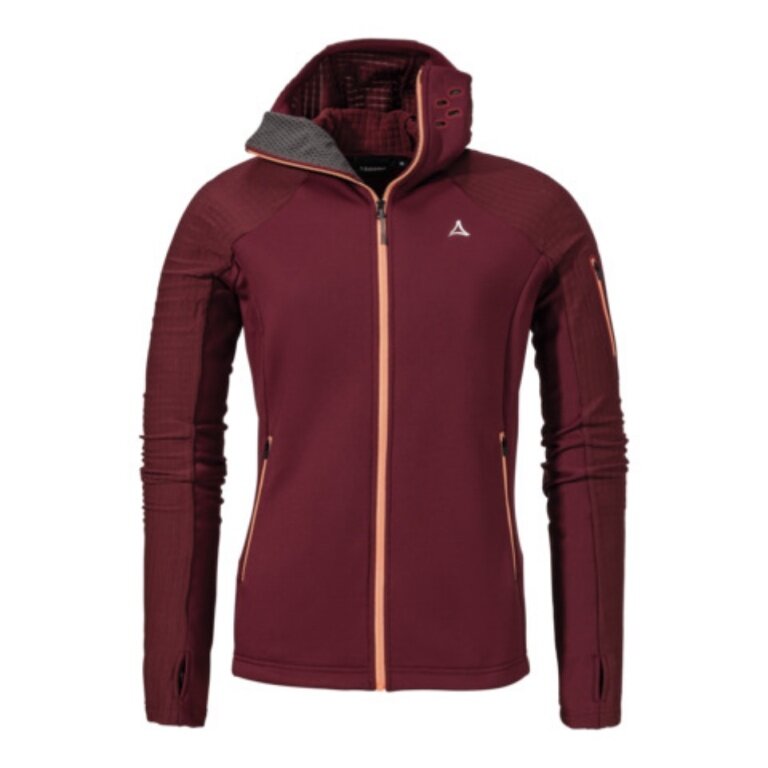 Schöffel Fleece Jacket Rotbach Hoody (Hood, 2-way stretch, quick-drying, breathable) burgundy Women