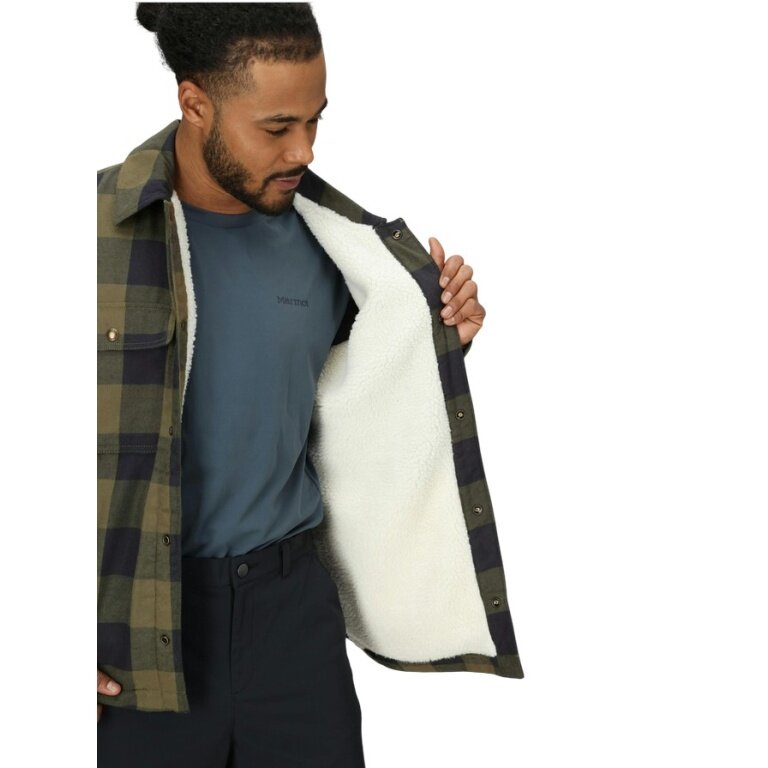 Marmot Ridgefield Sherpa Flannel Shirt Jacket (Cotton, warm) dark green/black men's