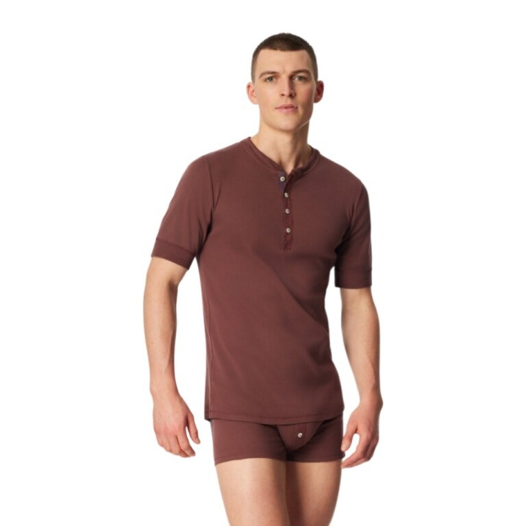 Schiesser Leisure T-shirt Revival Karl-Heinz Short Sleeve Brown Men's