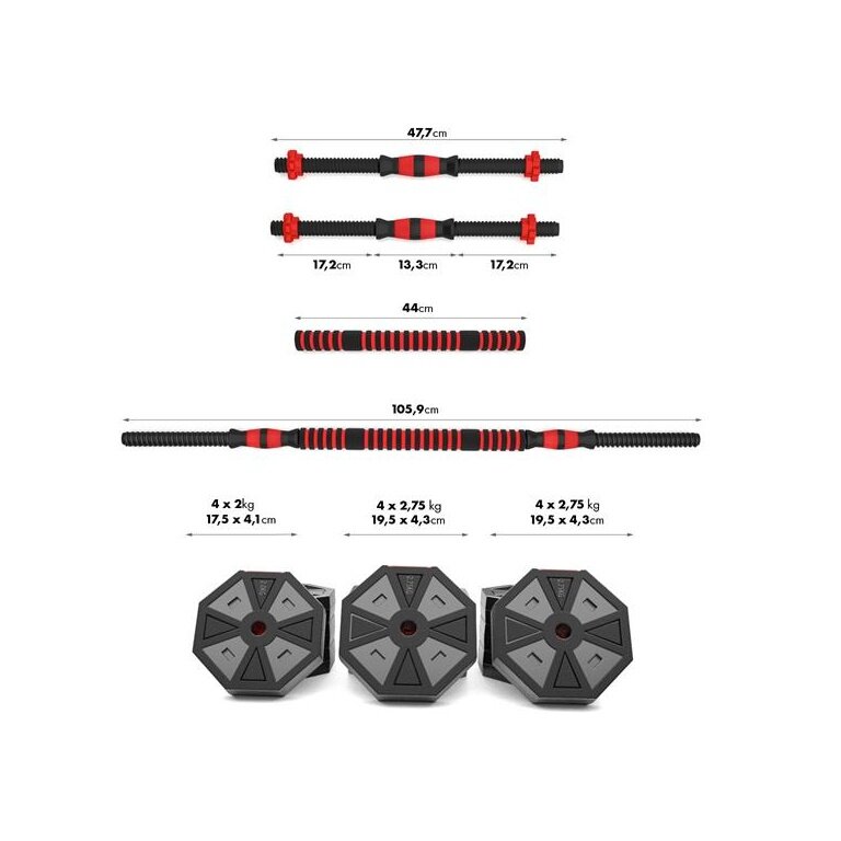 - Dimensions of the dumbbell bar: