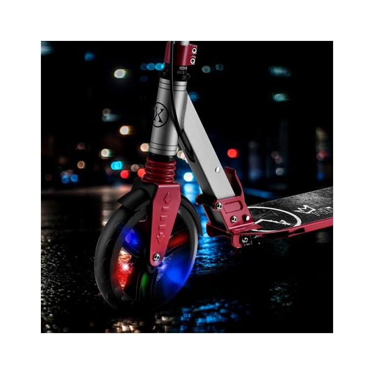 - thanks to the use of large polyurethane wheels with a diameter of 200 mm and high-quality ABEC 7 bearings, the scooter offers an extremely smooth ride.