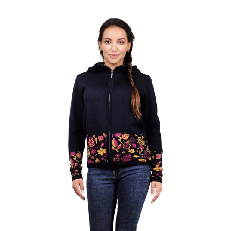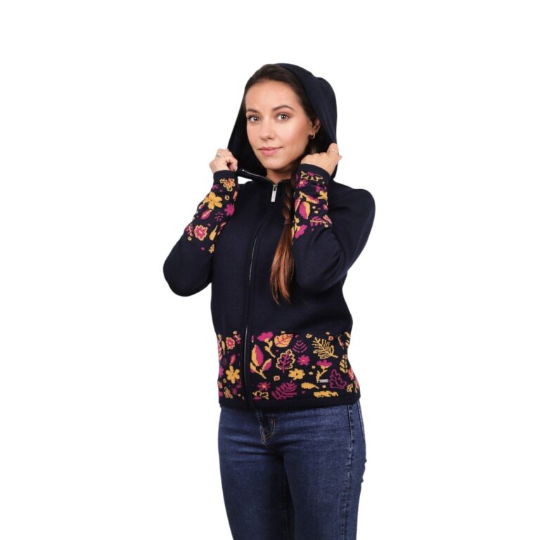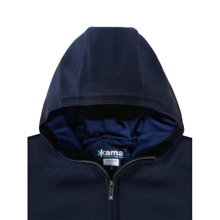 Kama Hooded Sweatshirt 5050 Full Zip (Merino Wool Blend, Windproof, Breathable) Navy Blue Ladies
