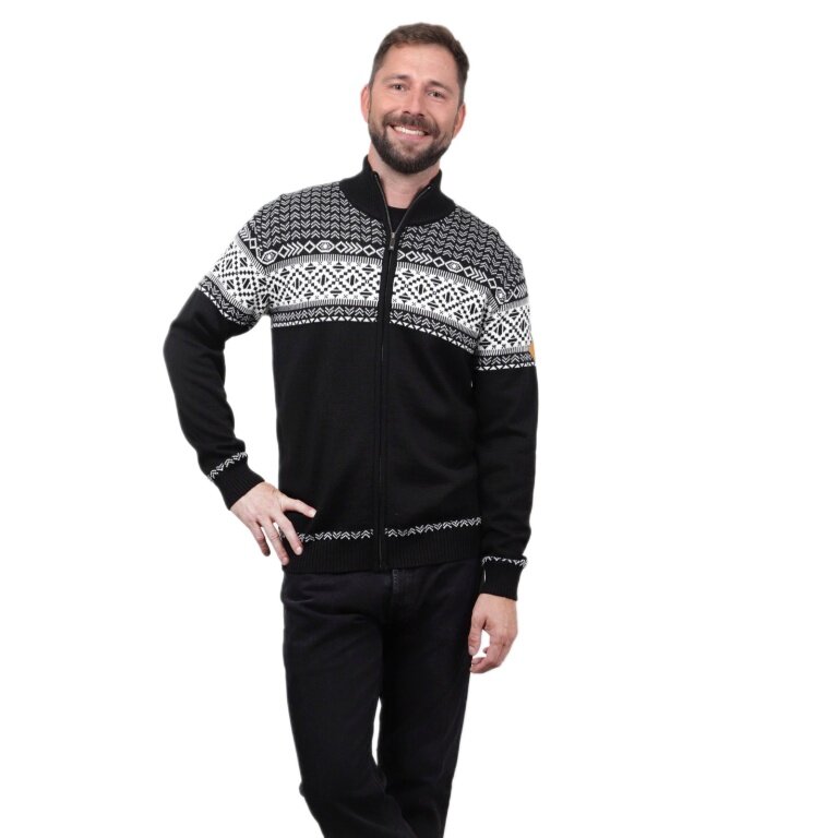 - The jumper features an original jacquard pattern and a full-length zip, making it comfortable to wear in the city and in nature all year round