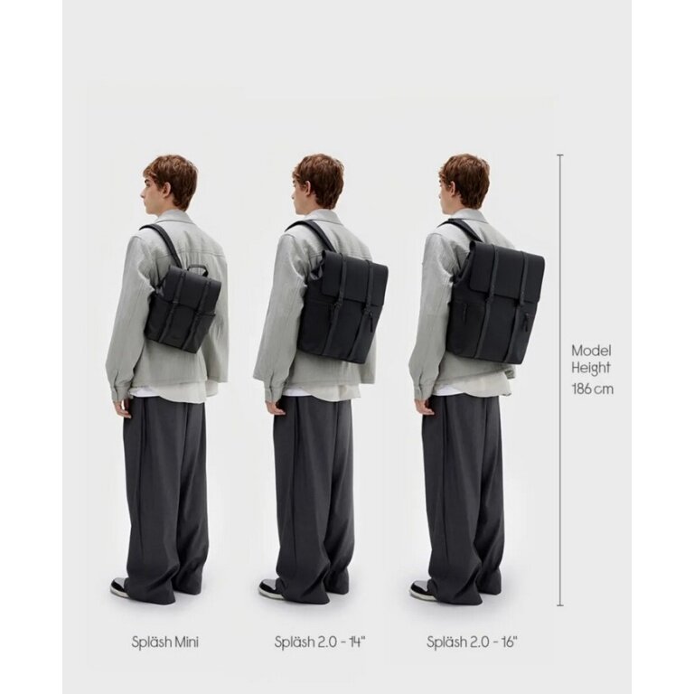 - The Spläsh backpack has been reinterpreted in a more sustainable material – robust, waterproof, and with a clear design.