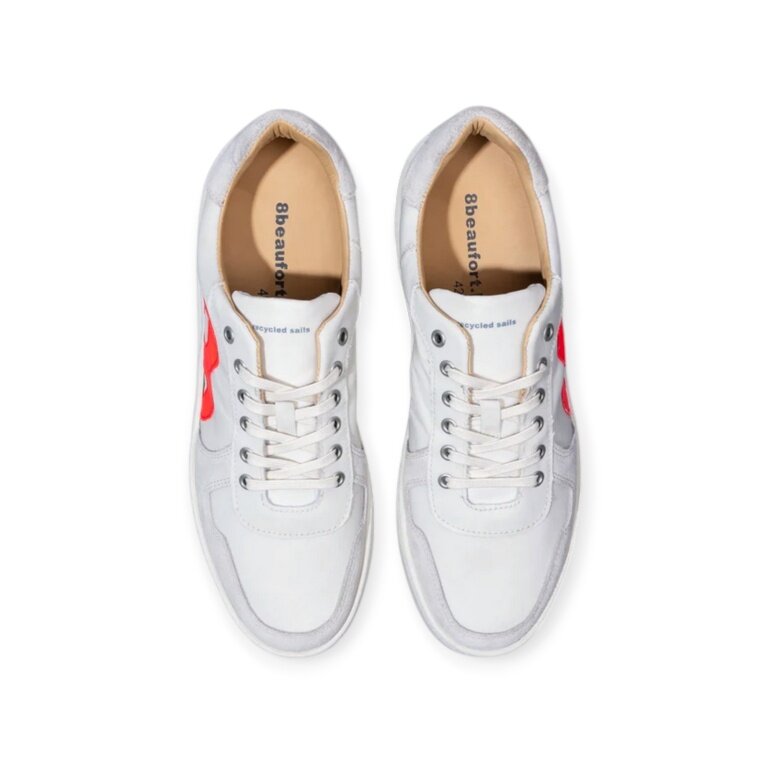 - White sneaker from 8beaufort.Hamburg, made from recycled sailcloth, with an interior lining of vegetable-tanned and chrome-free leather and cotton.