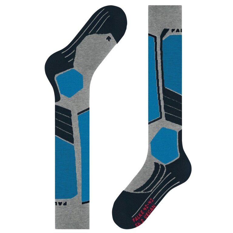 Falke Ski Sock SK2 Intermediate Vegan Skiing Knee Socks (optimal fit) light grey/blue Men - 1 Pair