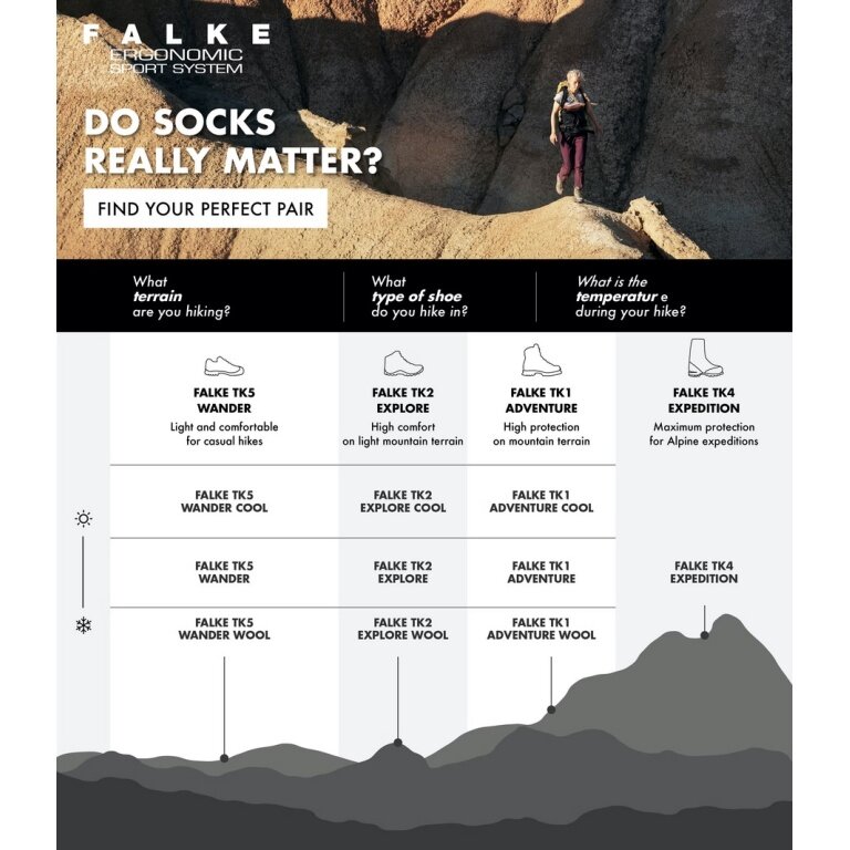 • with its medium cushioning and Merino wool mix, the hiking sock TK2 for kids provides the best comfort and good thermal insulation for hikes in light terrain in any weather conditions
