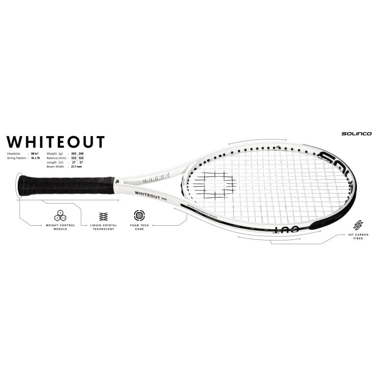 Solinco Tennis Racket Whiteout #23 98in/290g/16x19/Tournament white - unstrung -