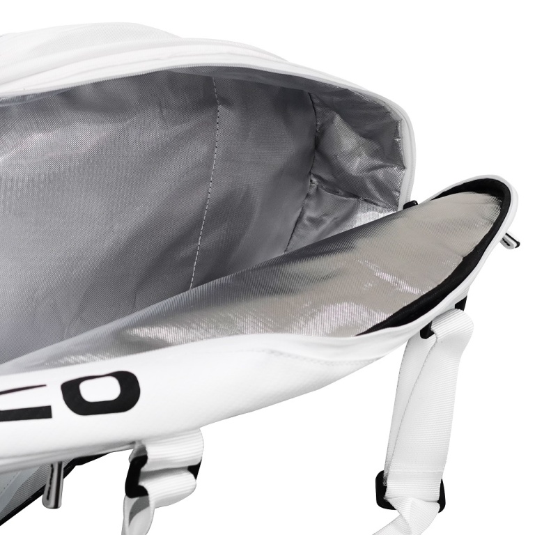 - 3 large, easily accessible main compartments with space for up to 12-15 rackets, shoes and clothing (1 compartment thermally insulated)