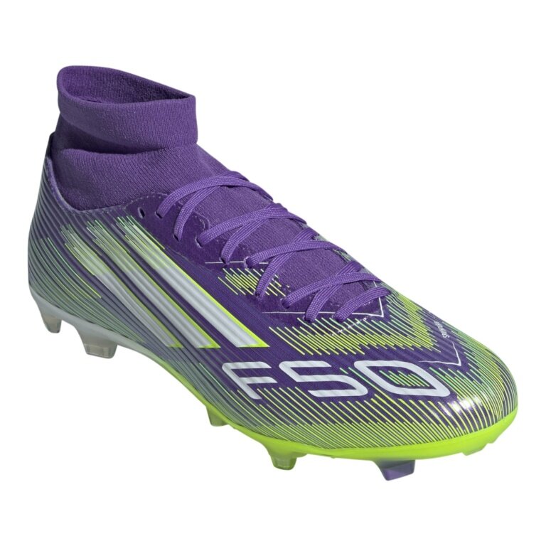 adidas Football Boots F50 League MID FG/MG (Artificial Turf, for Firm Ground) purple/white/lime Men's