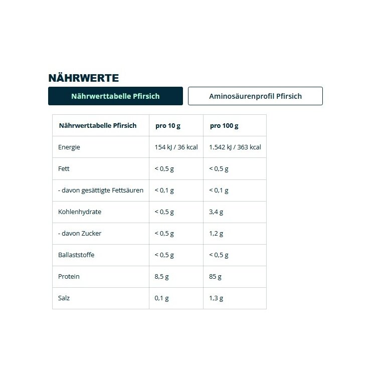 - Chocolate & Peach: enriched with natural, authentic flavours – for extra enjoyment in your smoothie, coffee, or dessert