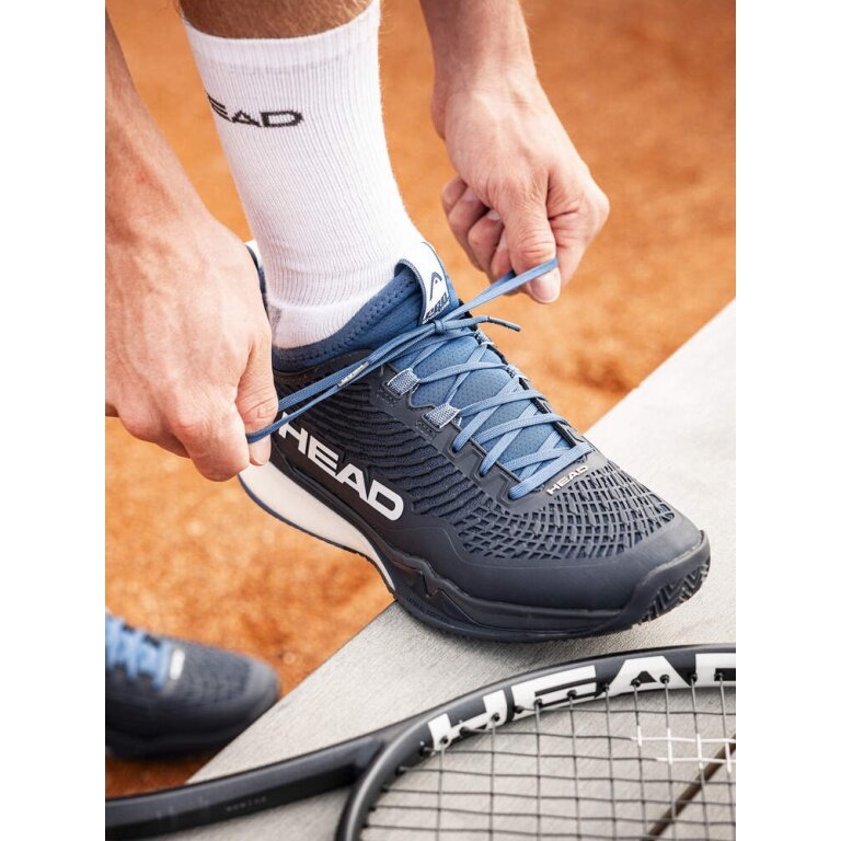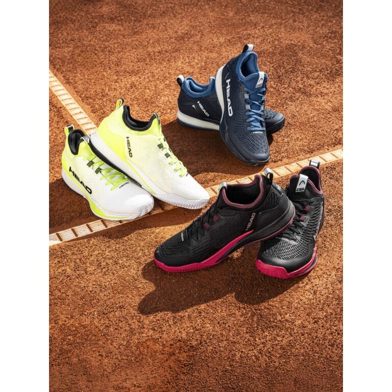 the outsole has a continuous herringbone profile specifically designed for clay courts and is made from HEAD's non-marking Hybrasion+ rubber for excellent grip and durability.