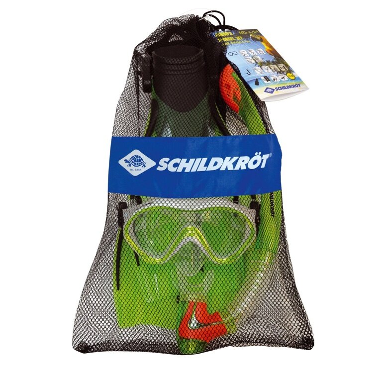 - Schildkröt children's snorkel set Bermuda: silicone diving goggles, silicone snorkel, and adjustable fins (S/M = 27-32).
