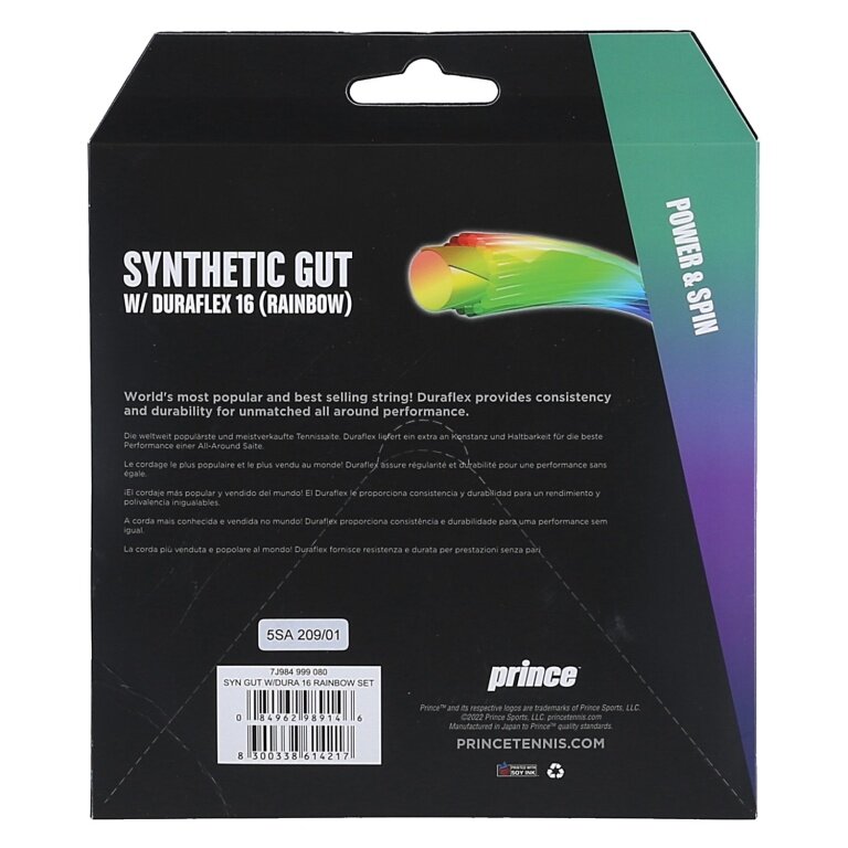 Prince Tennis String Synthetic Gut Duraflex Limited Edition (Allround+Durability) colourful 12m Set