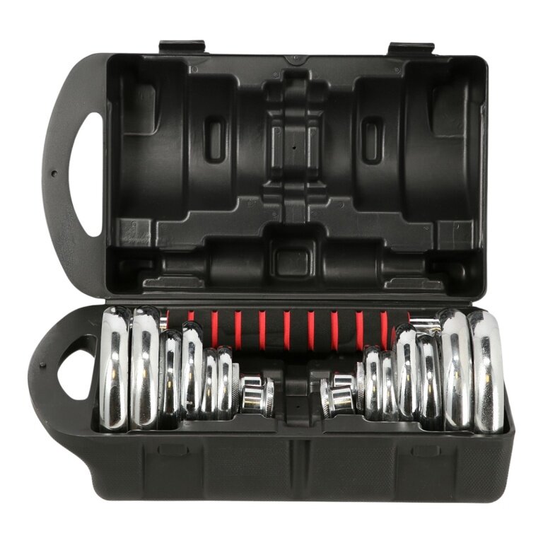 HMS Fitness Adjustable Dumbbell SR52 in Case (20kg, Chrome) silver