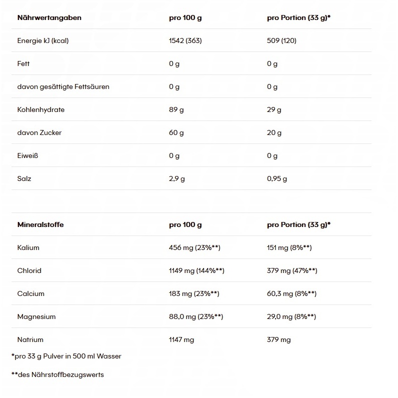 • Ingredients: Dextrose, Maltodextrin, Fructose, Minerals (Sodium Citrate, Sodium Chloride, Calcium Lactate, Potassium Chloride, Magnesium Carbonate), Acidity Regulator (Citric Acid), Natural Flavors, Beetroot Juice Powder