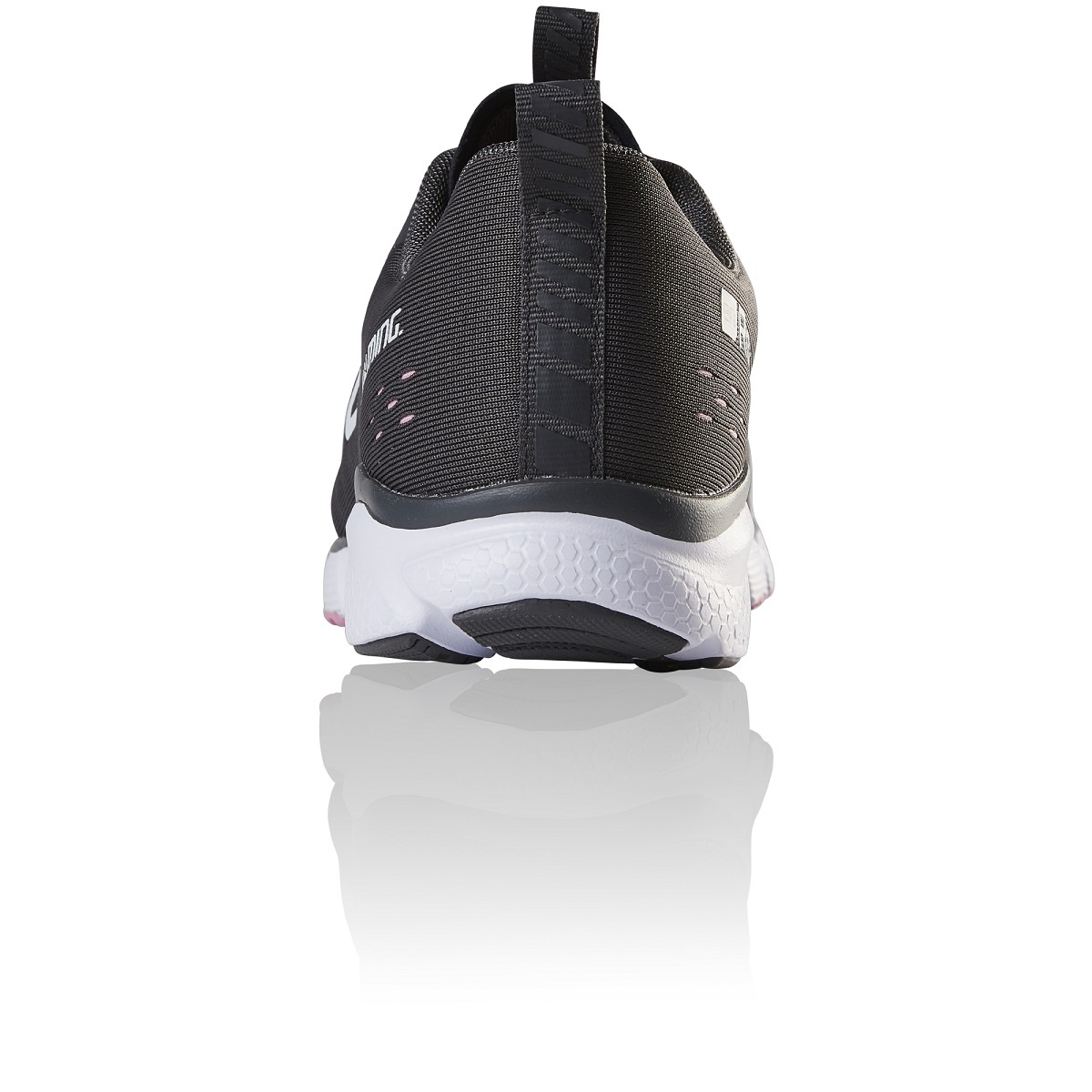 The outer skeleton of the running shoes encloses a flexible shoe construction. It thereby fixes the foot in its optimal position and provides additional stability during any change of direction. This clever construction ensures an immediately comfortable feeling and avoids pressure points when abruptly stopping or pushing off.