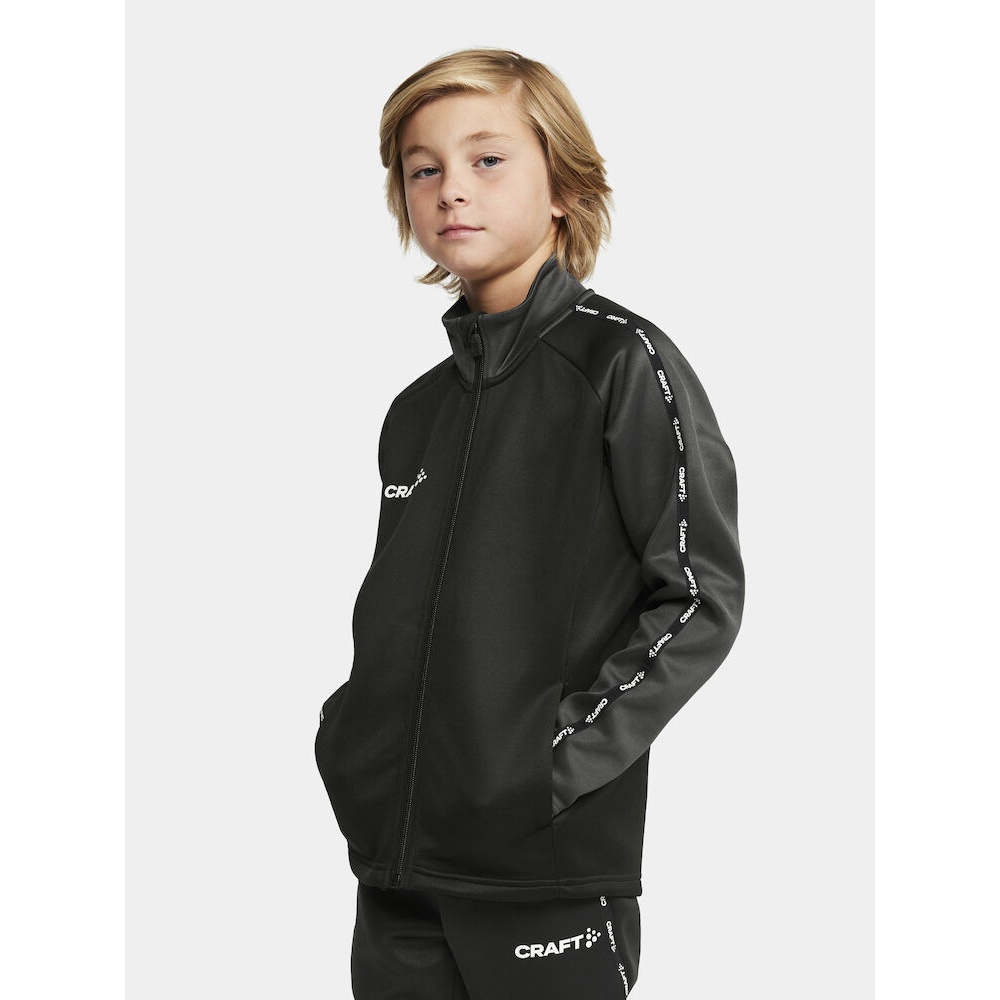 Craft Sport Training Jacket Squad 2.0 Full Zip (with side pockets, elastic functional material) black/grey Kids
