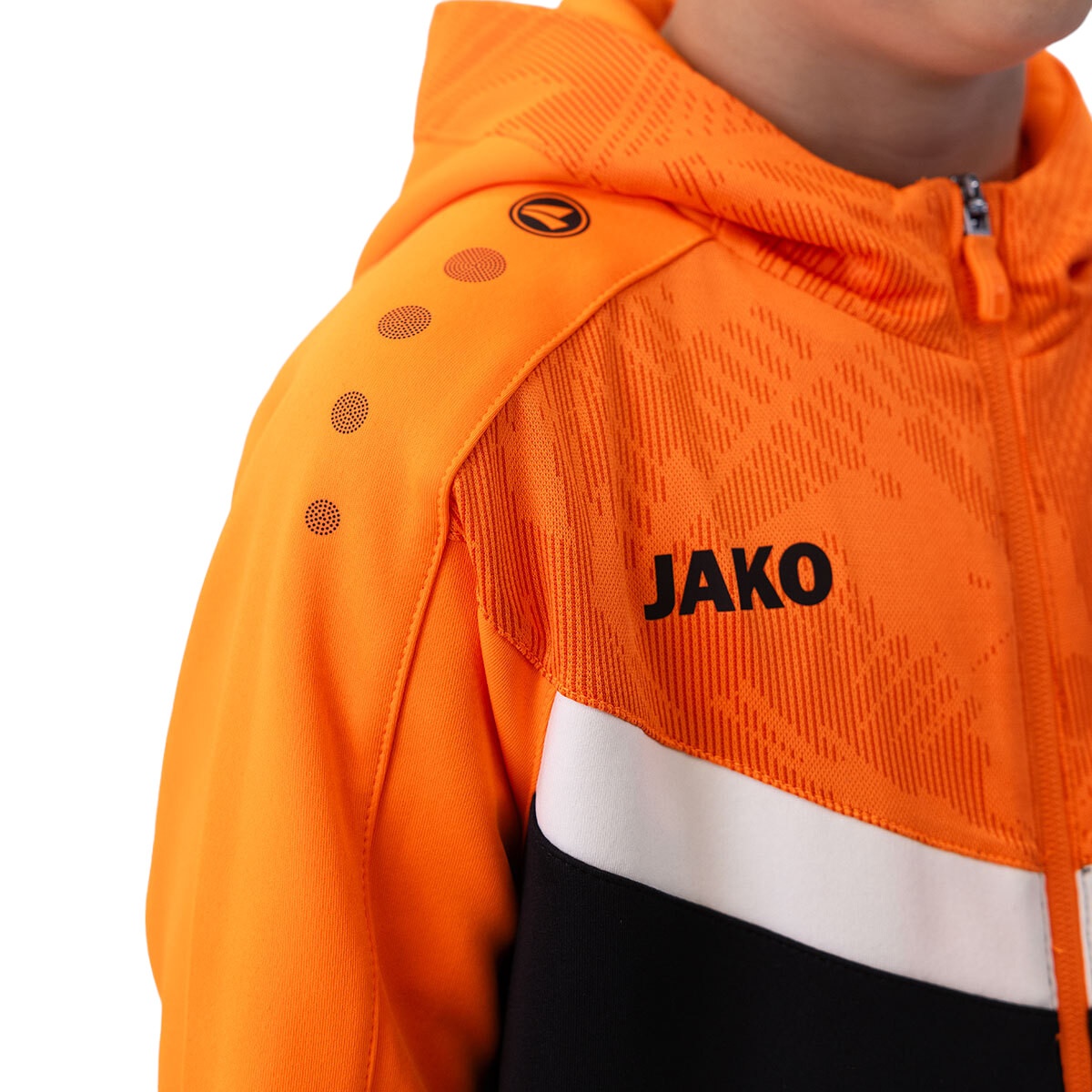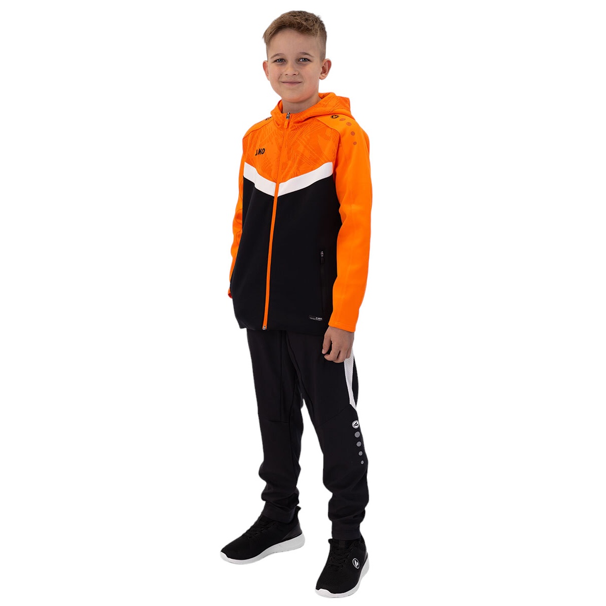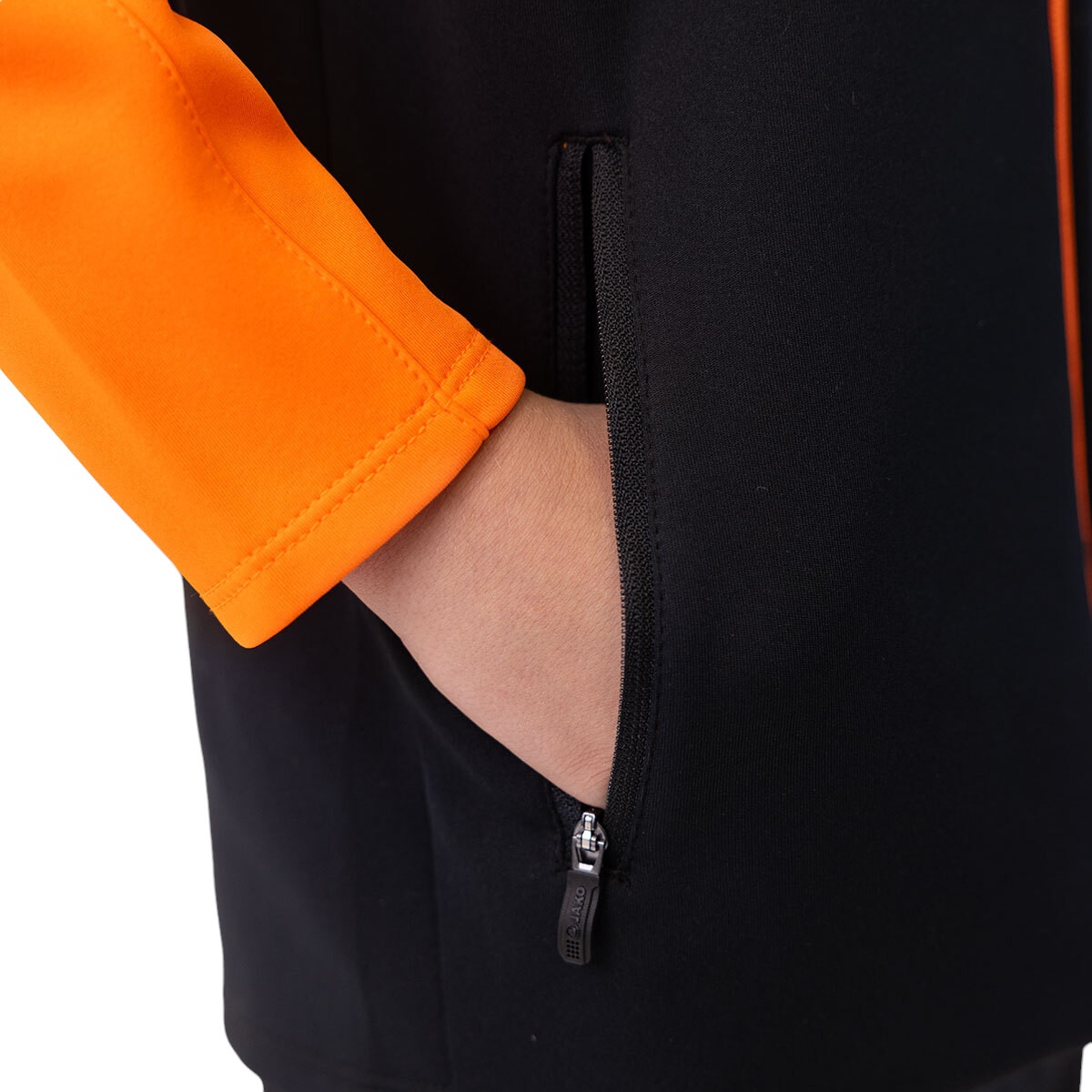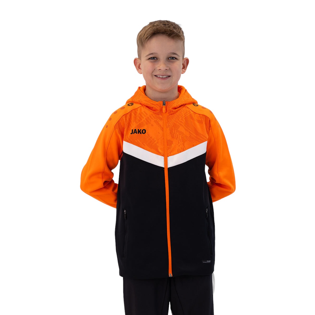 JAKO Hooded Jacket Iconic (Polyester Fleece, Side Pockets with Zip) black/neon orange Children