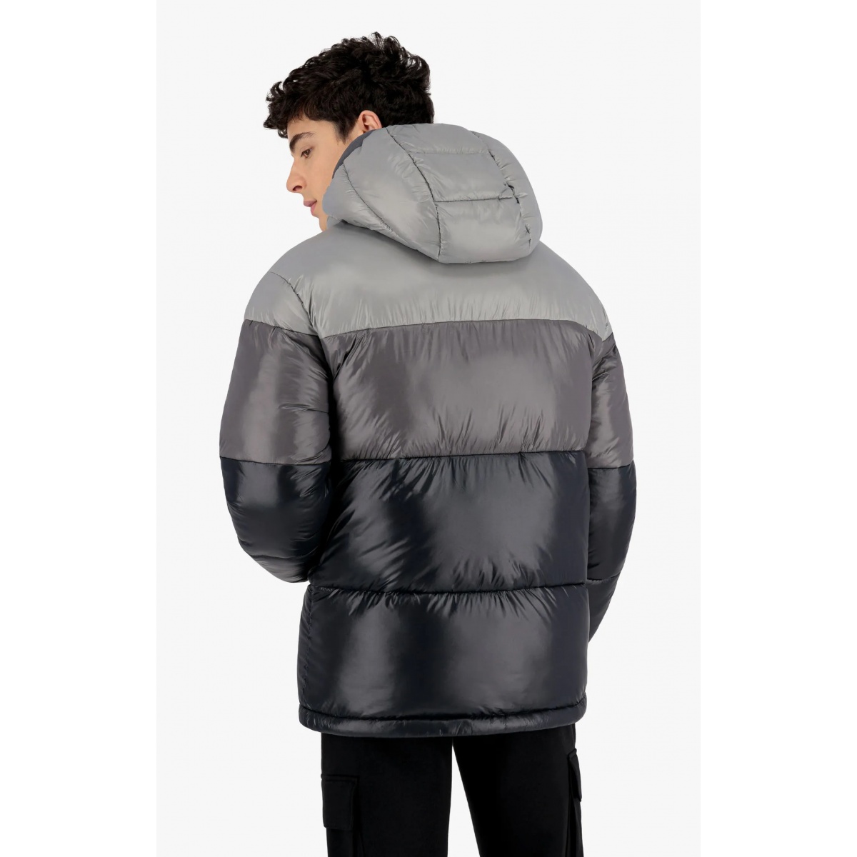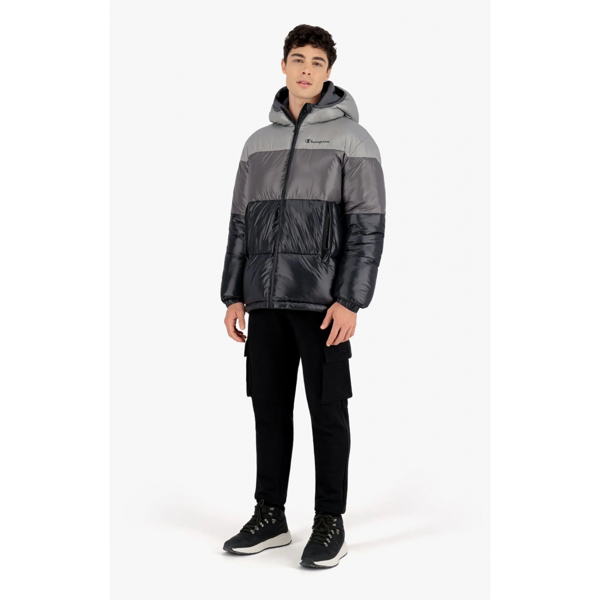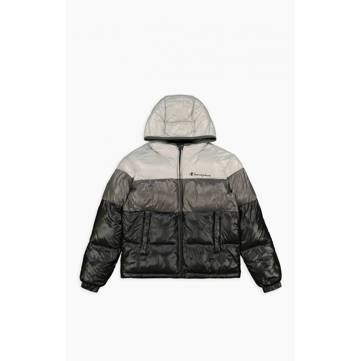 Champion Quilted Jacket - Padded Hooded Jacket with Gradient Panels - Black Men