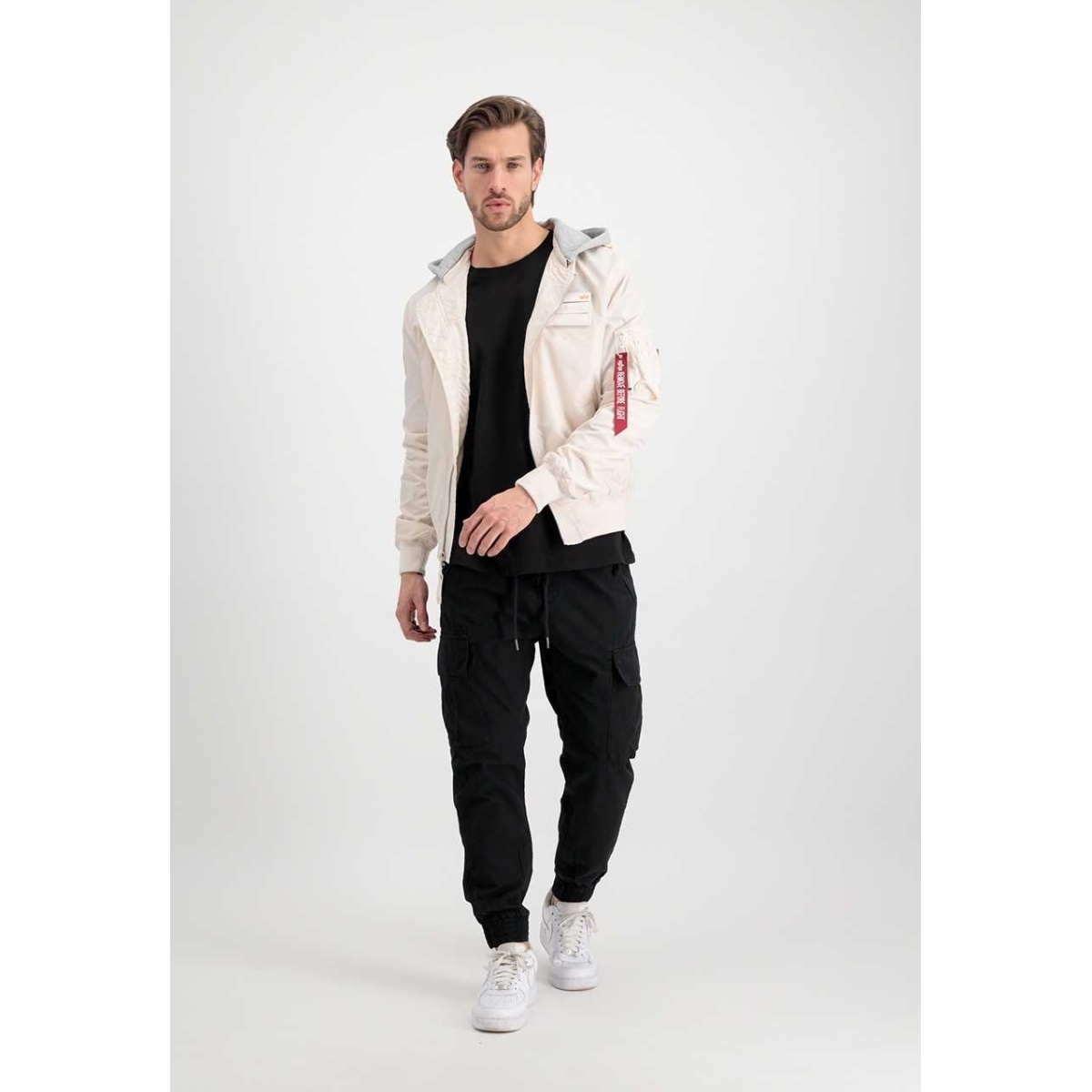 Alpha Industries Flight Jacket MA-1 TT Custom with Hood in Jet Stream White Men