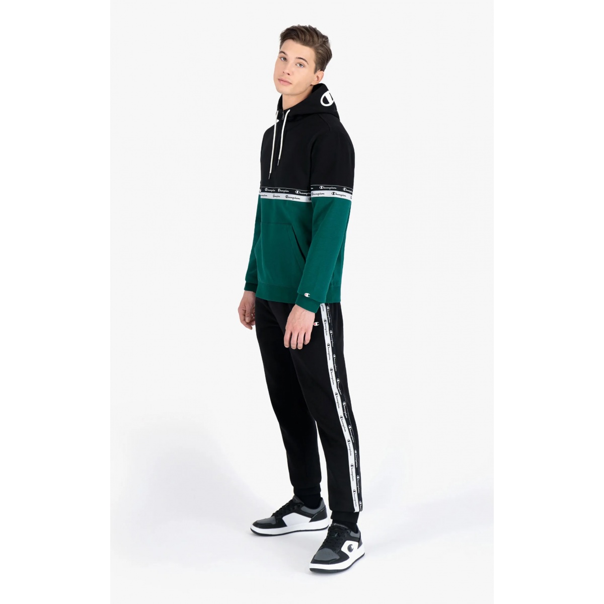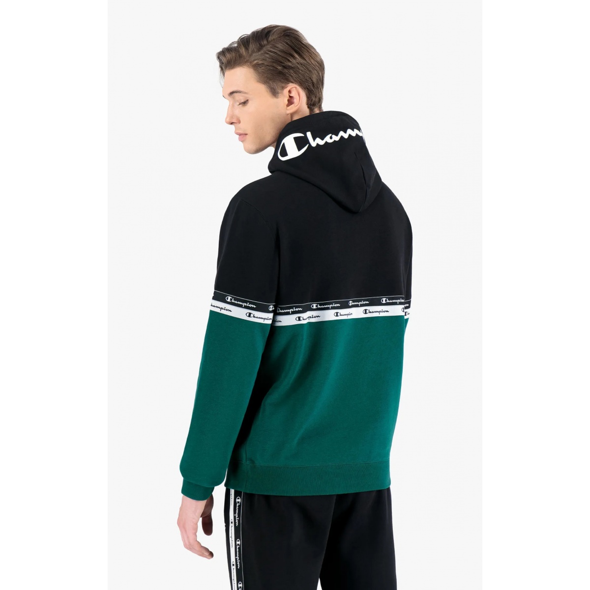 Champion Hoodie in color block design with double logo piping green Men