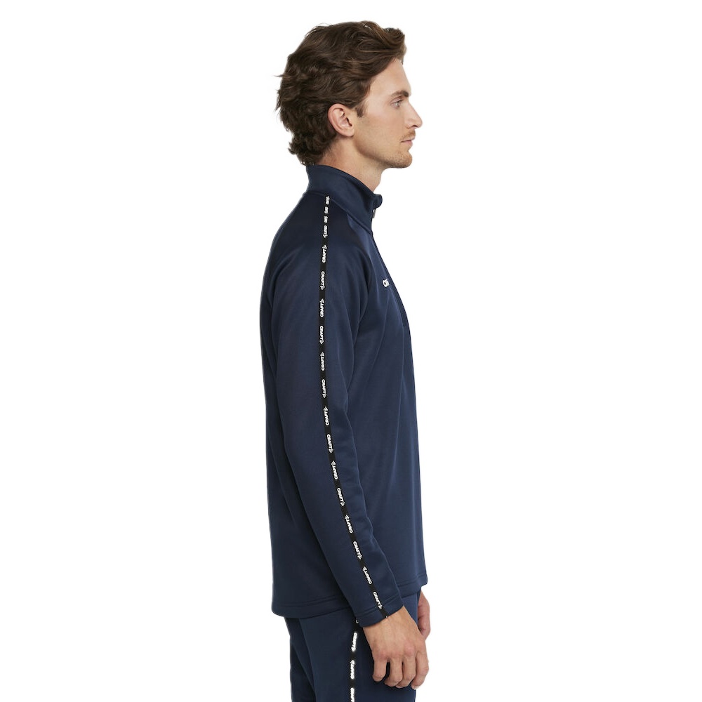 • The long-sleeved training jersey also features a half zip on the front and a color-coordinated design