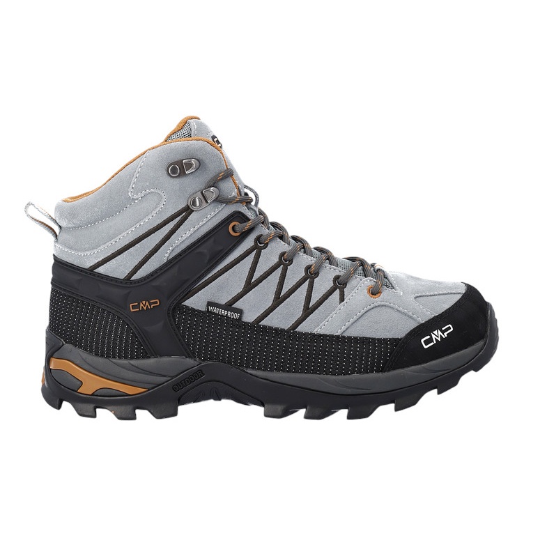 • CMP Rigel Mid is a high, waterproof and versatile men's trekking shoe, suitable for all dry and wet surfaces thanks to the structure and material mix of the CMP FullOn GRIP sole