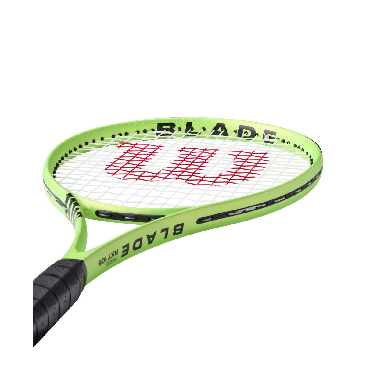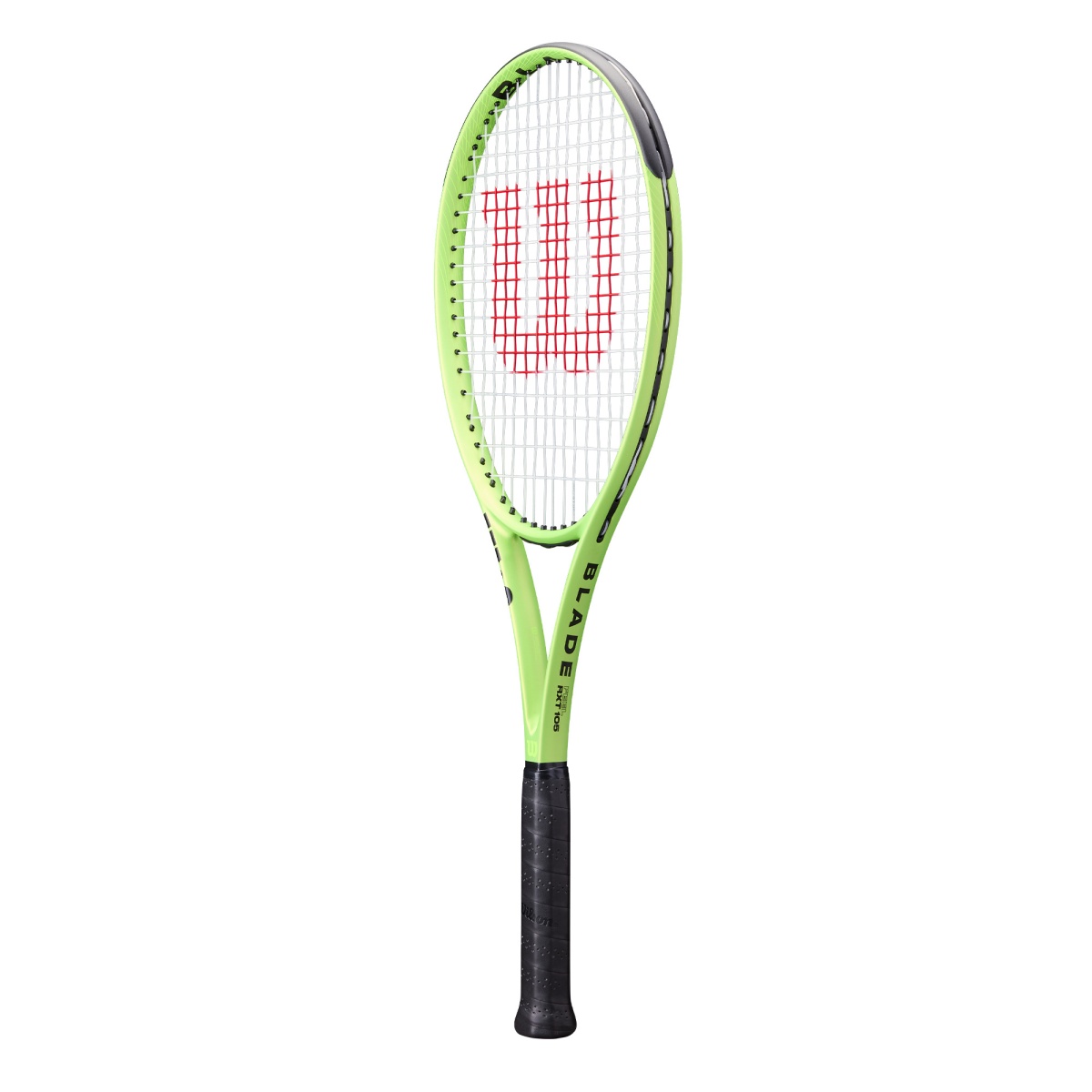 • electrify your game with the Blade Feel RXT 105 in radiant lime green, a recreational racket made of graphite that boosts confidence on the court