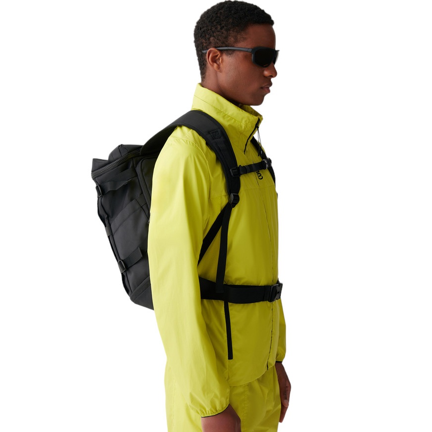 • The sporty, elegant shape of this accessory contrasts with the voluminous pocket trims and concealed zippers, giving the model a sporty look.