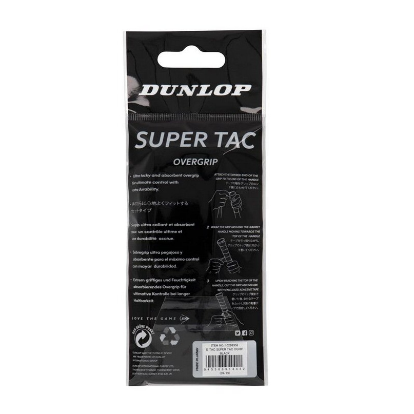 Dunlop Overgrip Super Tac 0.5mm (extremely grippy, moisture-absorbing) black - 1 piece