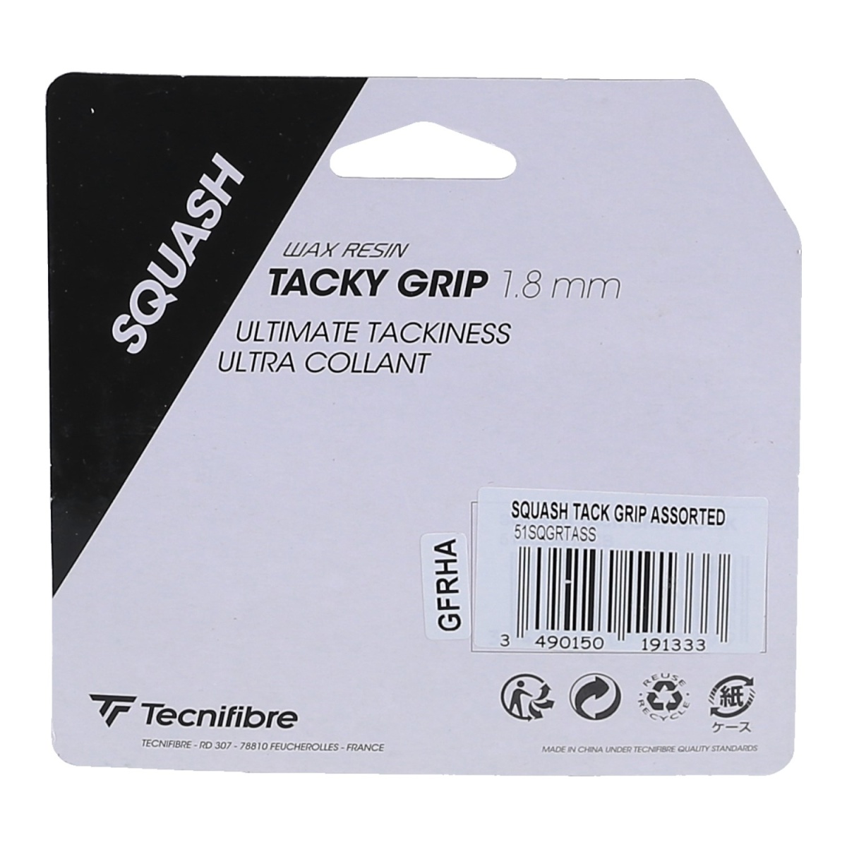 Tecnifibre Squash Tacky Grip Base Tape (sticky grip with wax resin) assorted colours, 12 pieces in a box.