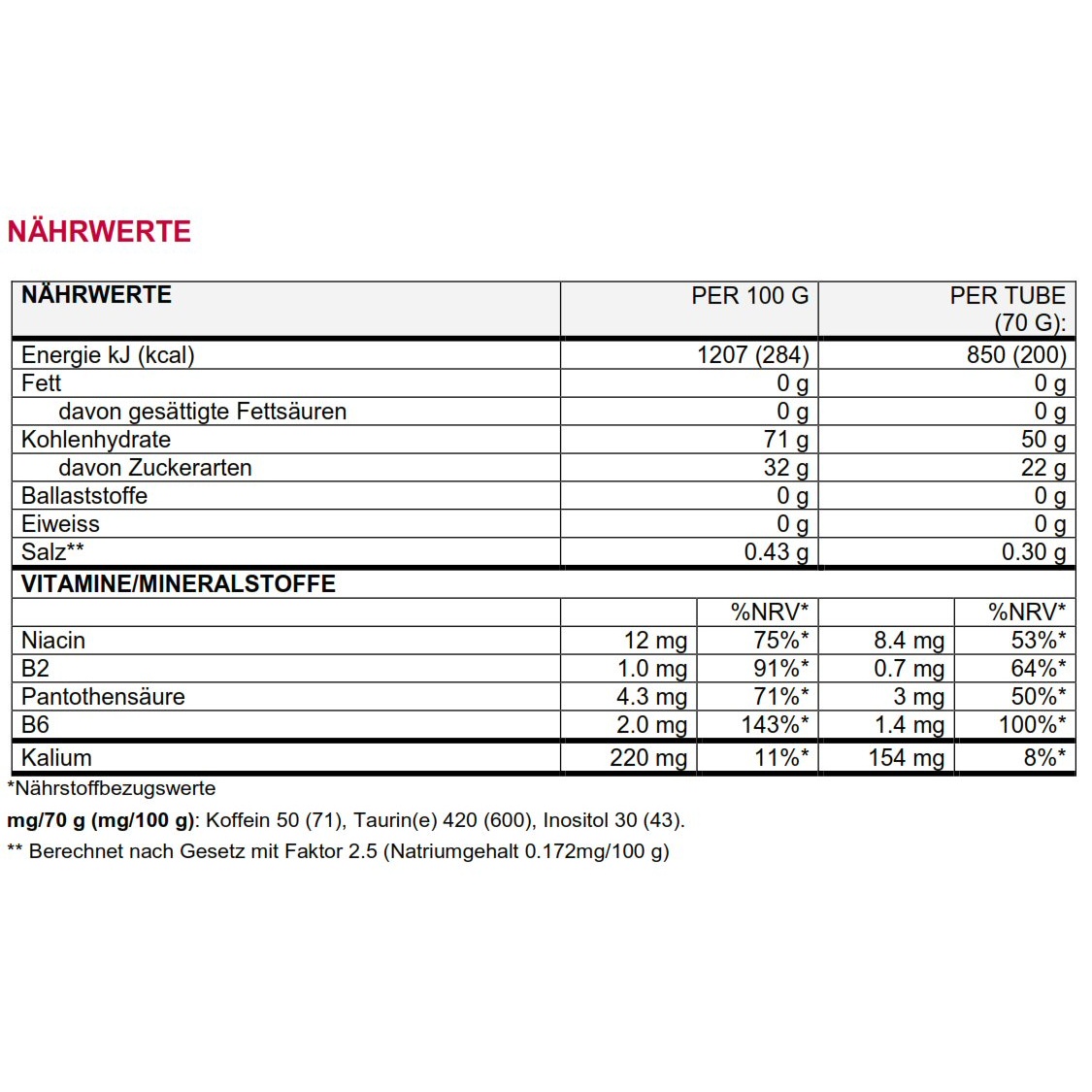 • enriched with 50 mg of caffeine per tube