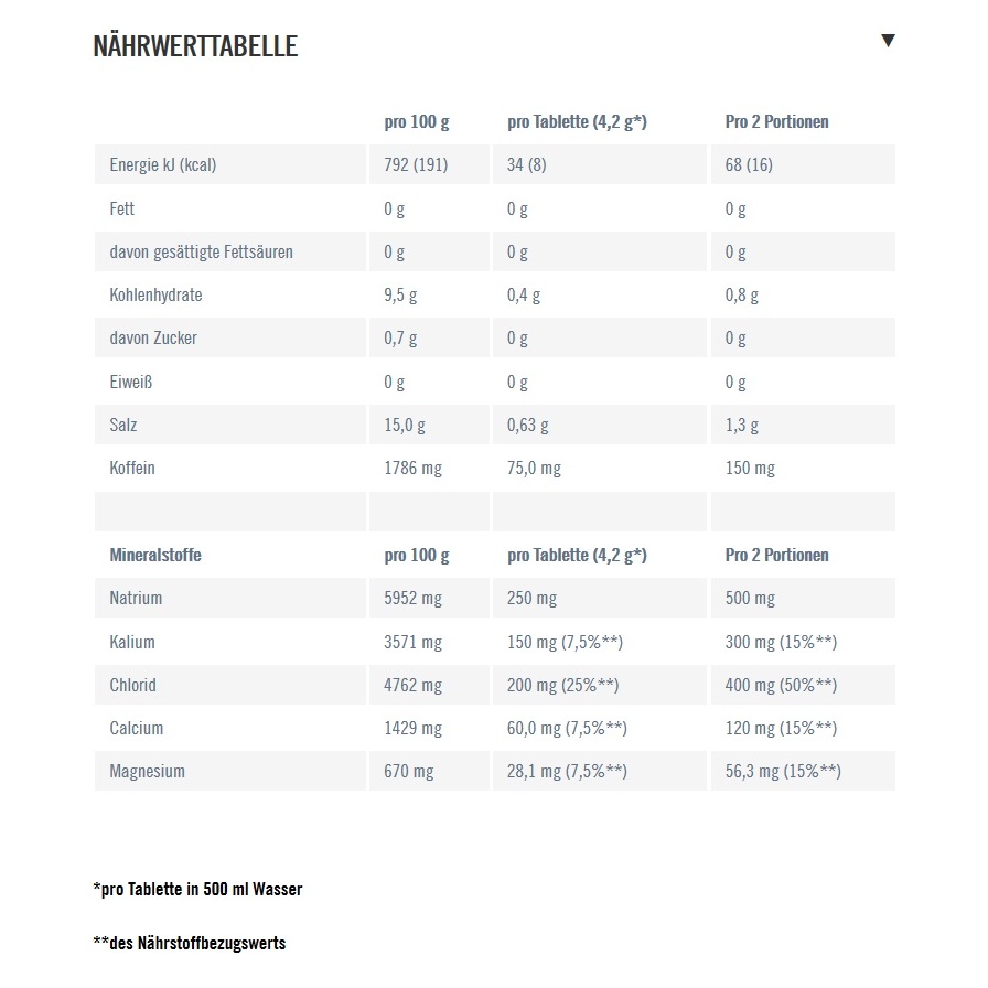 • 5ELECTROLYTES effervescent tablets create a high-quality, calorie-free sports drink with the 5 main electrolytes in the ratio you lose them through sweat - ideal for basic endurance training and whenever you are doing sports but don't want to consume calories or carbohydrates