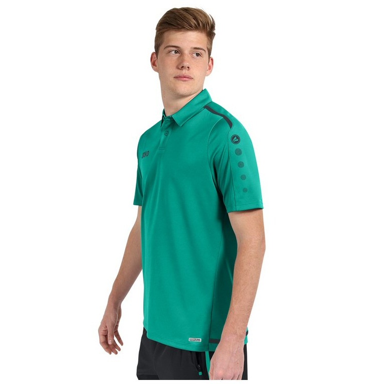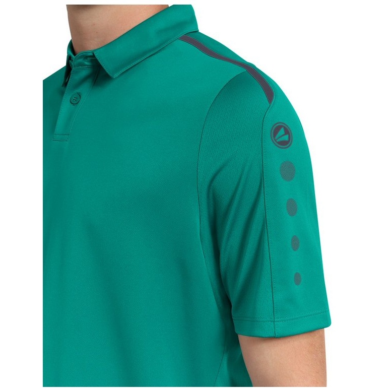 • on the polo shirt, the typical contrast stripes for the line can be seen in combination with the JAKO dots on the sleeve and shoulder area