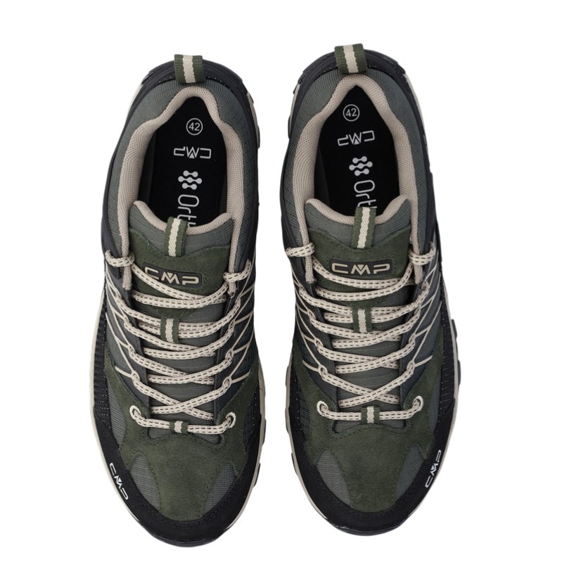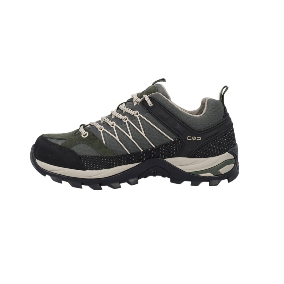 • CMP Rigel Low is a low, waterproof and versatile men's trekking shoe, suitable for all dry and wet surfaces thanks to the structure and material mix of the CMP FullOn GRIP sole