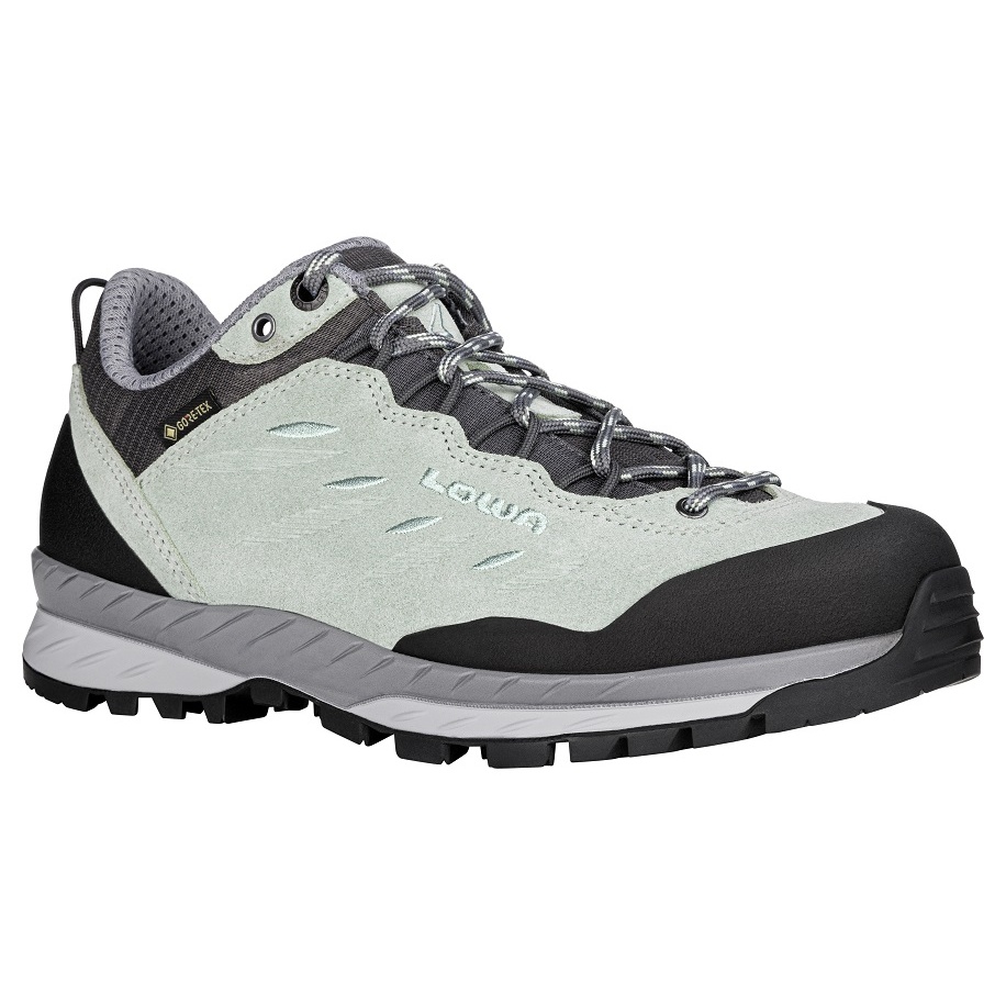 Lowa Hiking Shoes Delago GTX Low (Trekking, Split Leather-Textile, Waterproof) Patina Green/Light Blue Women