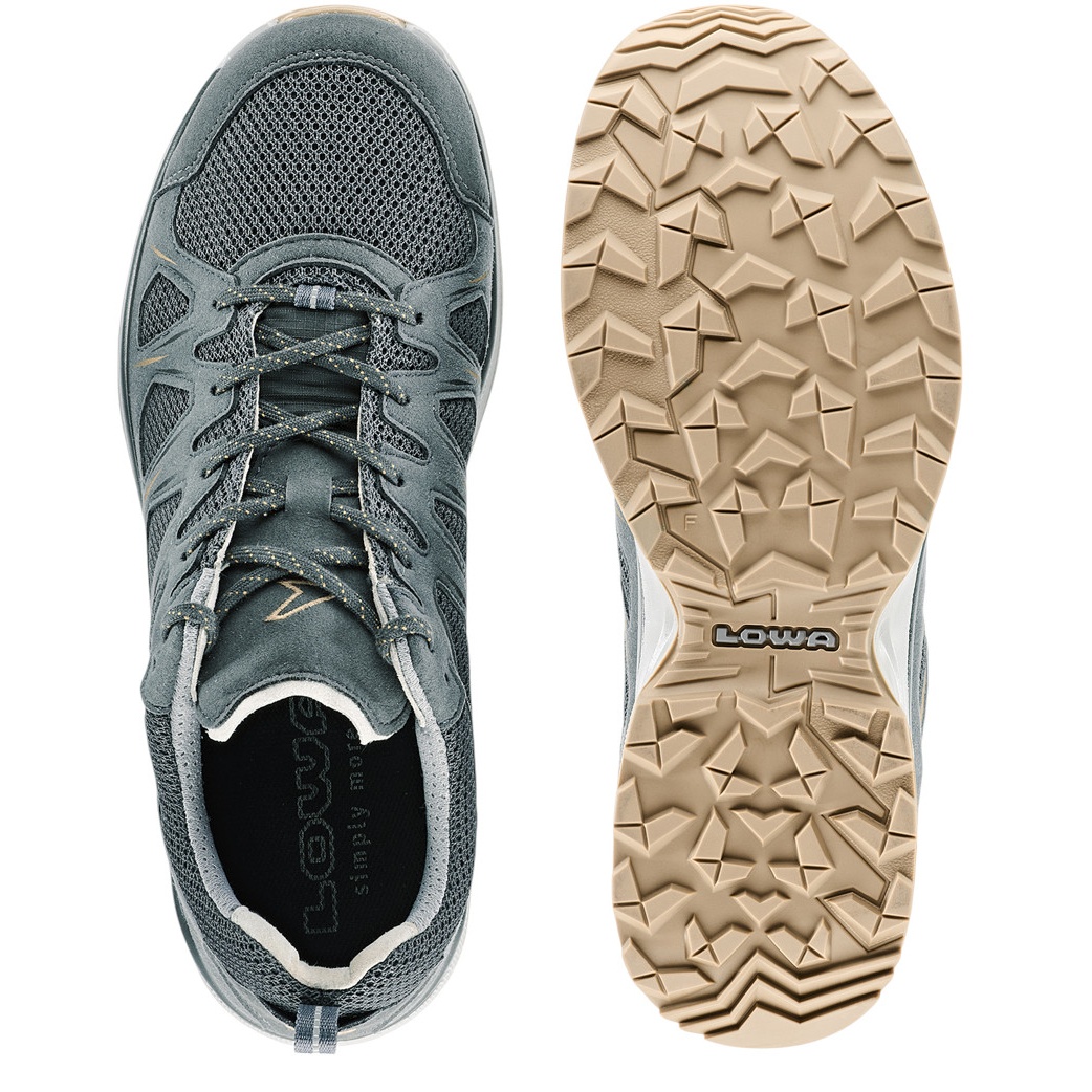 • Thanks to its double-injected midsole made from the DYNAPU® material developed by LOWA, the INNOX EVO II LO is flexible, lightweight, and highly cushioned.