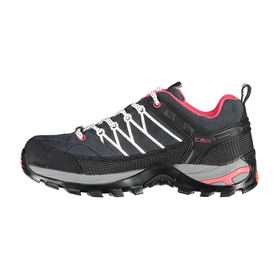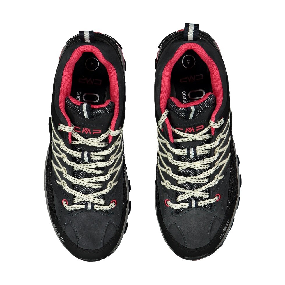 • CMP Rigel Low is a low, waterproof and versatile women's trekking shoe, suitable for all dry and wet surfaces thanks to the structure and material mix of the CMP FullOn GRIP sole