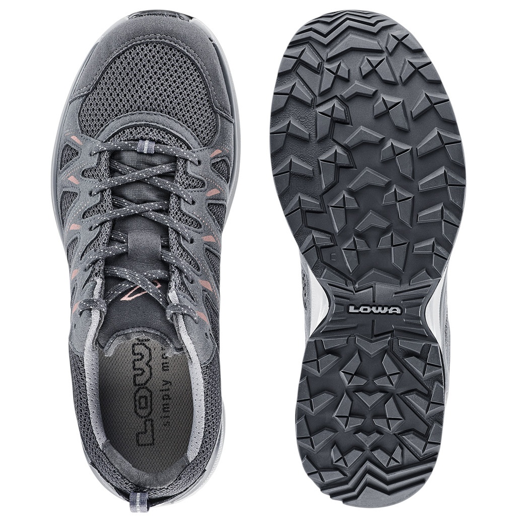 Lowa Hiking Travel Shoes Innox Evo II Low (All-Terrain, Synthetic/Textile) 2025 asphalt/salmon Ladies
