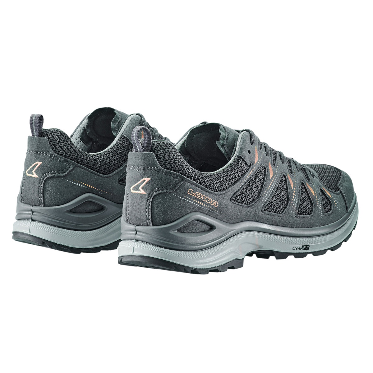 • Thanks to its double-injected midsole made from the DYNAPU® material developed by LOWA, the INNOX EVO II LO Ws is flexible, lightweight, and highly cushioned.
