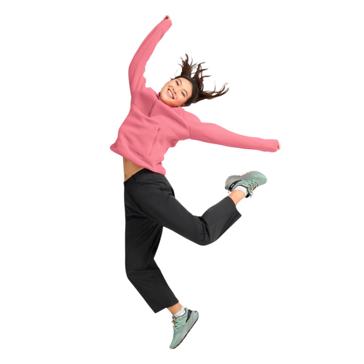 • the high collar, half zip, and elastic cuffs combine practical comfort with a casual look.
