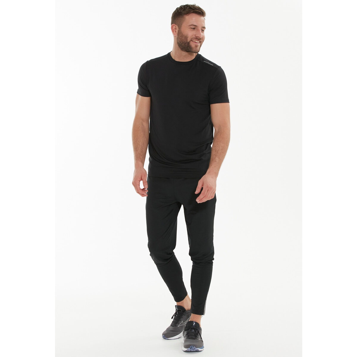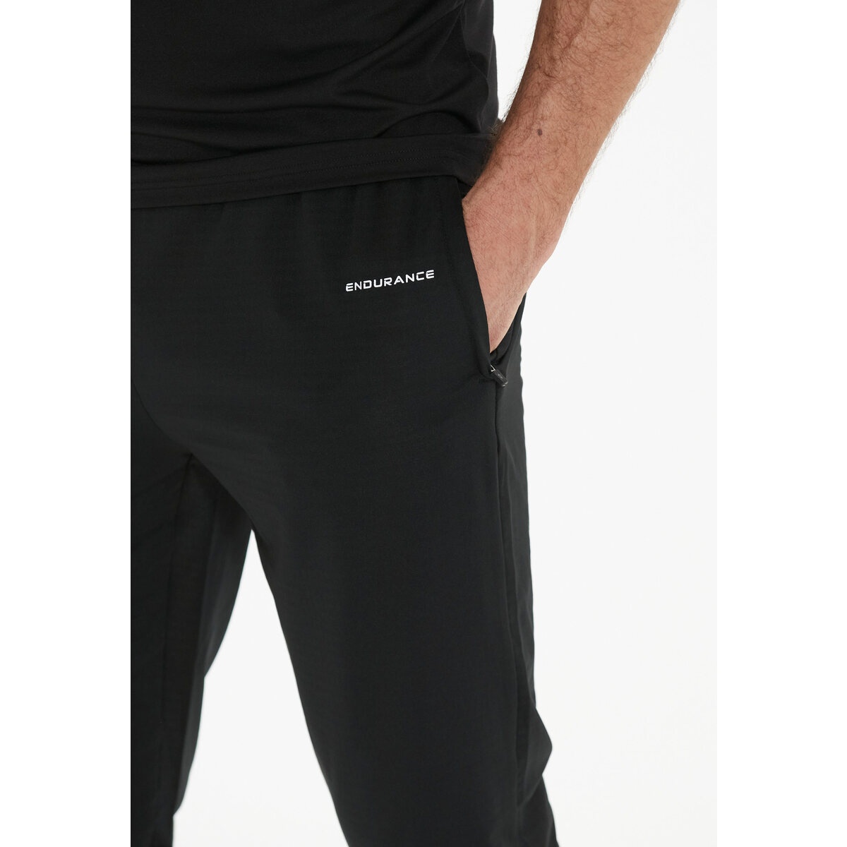 Endurance sports trousers Moores with stretch waistband (reflectors) long black men