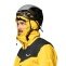 • two covered side openings on the collar for threading the chin strap so it can be closed directly under the chin. This allows for an ergonomic fit of the hood, providing improved protection and freedom of movement