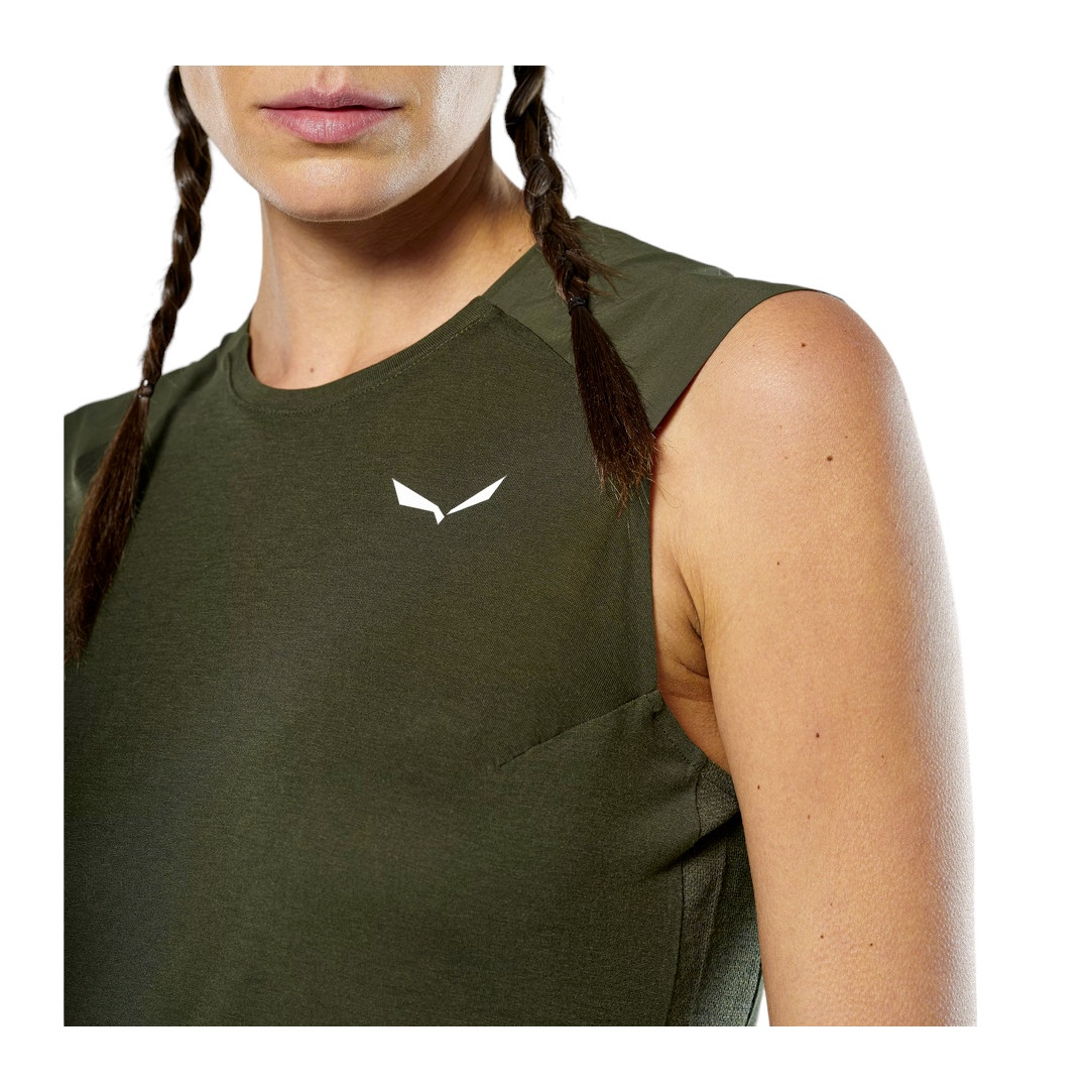 Salewa Tank Top Puez Merino Hybrid (Merino wool, ideal thermal regulation) olive green ladies
