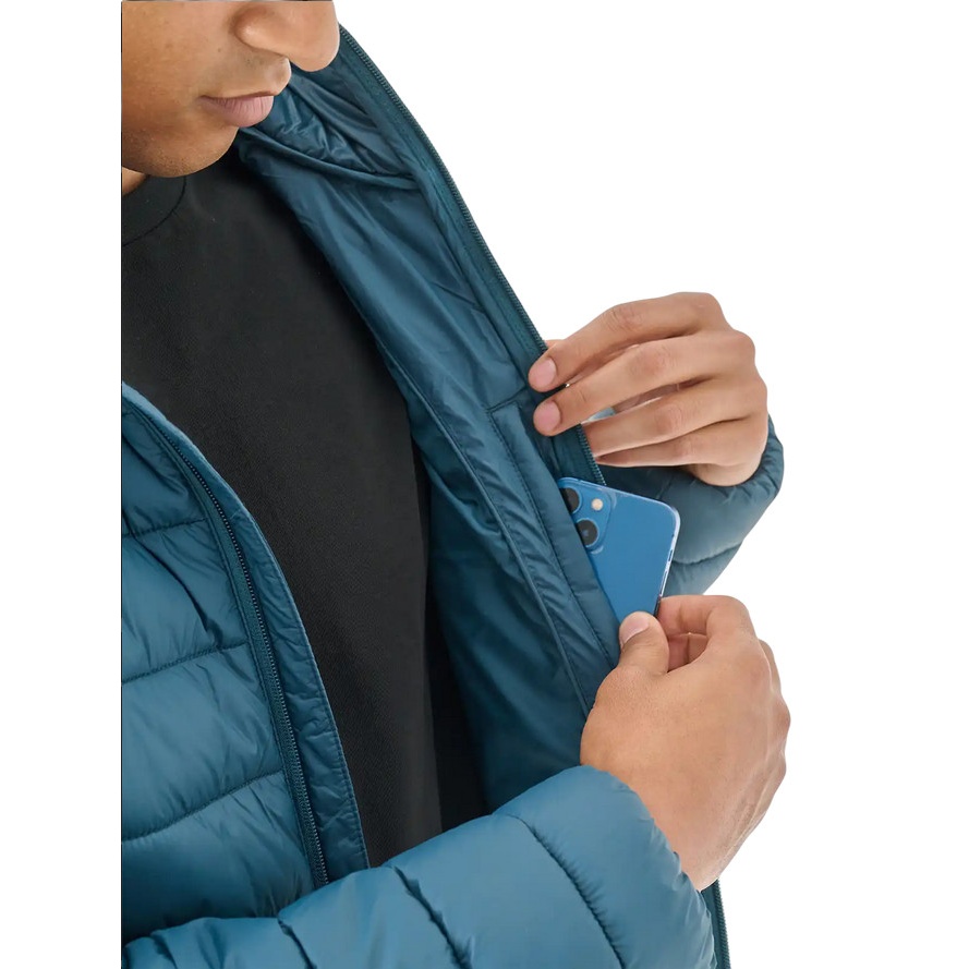 • the lightweight hooded jacket with synthetic down filling for men is the perfect choice for everyday and sporting activities on warmer or cloudy days during the transitional period.