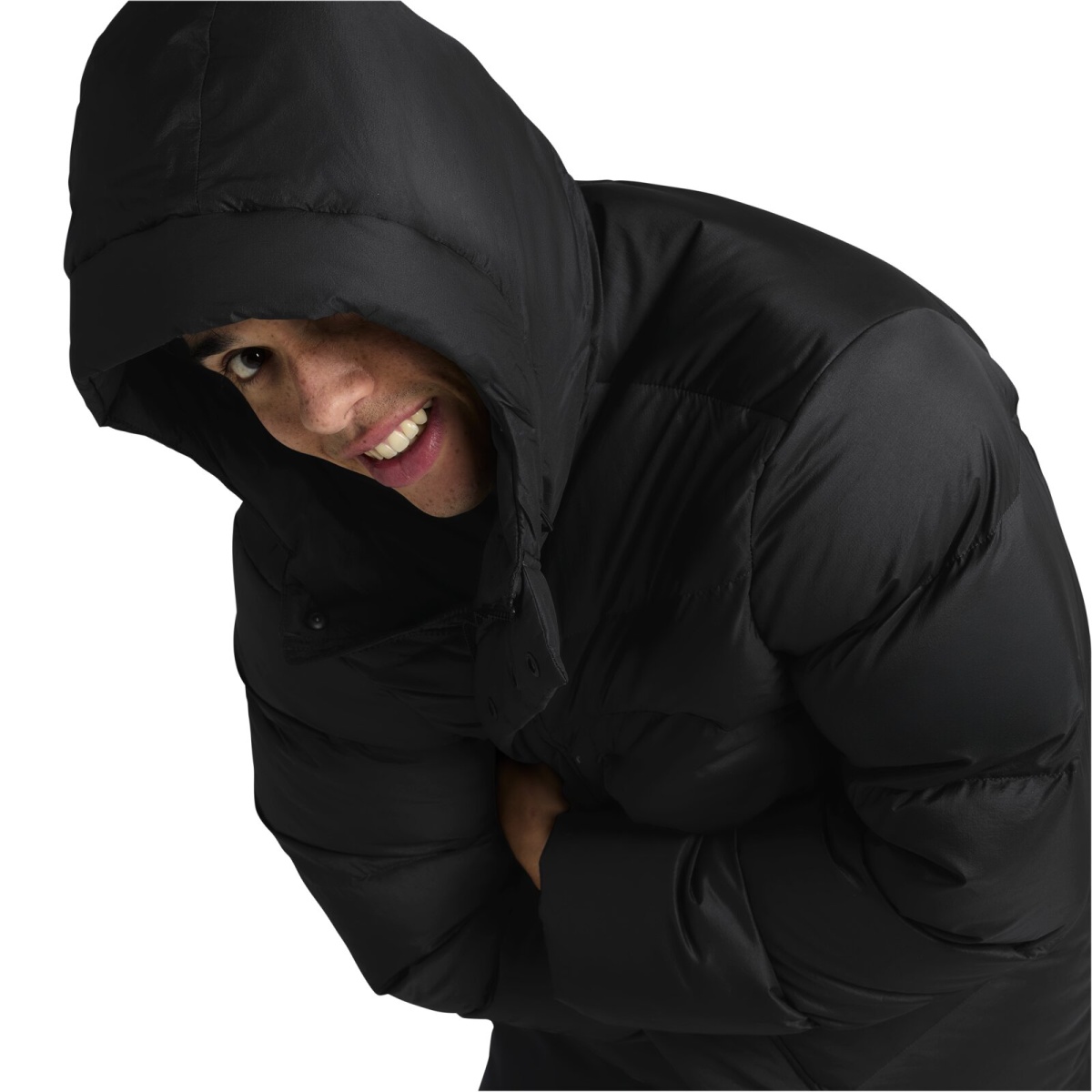 • The hem and the fixed hood provide adjustable protection.