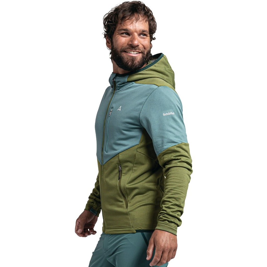 Schöffel Fleece Jacket Hydalen Hoody (breathable, quick-drying, 2-way stretch) olive green/blue Men's